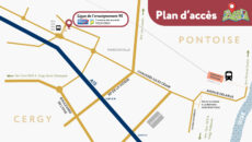 | Gare de Pontoise (Transilien H & J, RER C) ou de Cergy-Préfecture (RER A) : Depuis la gare de Pontoise ou Cergy–Préfecture, empruntez un bus 1223, 1224, ou 1242, jusqu’à l’arrêt « Avenue des Arpents », puis 2–5 min de marche. |