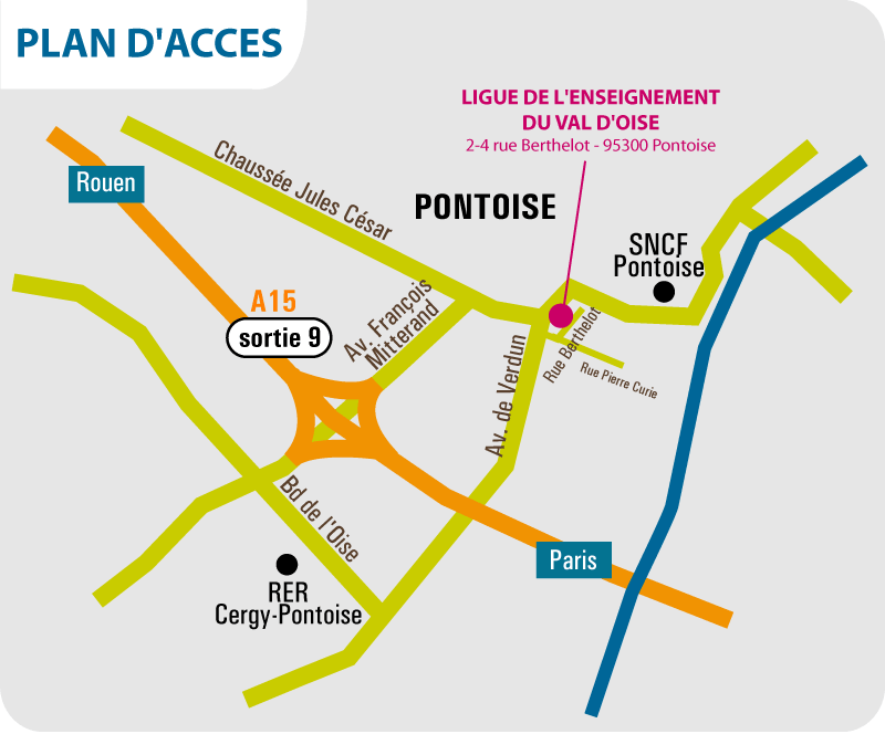 | Ligue de l’enseignement Fédération du Val d’Oise Immeuble le Vecteur 2 avenue des Arpents 95520 Osny T: 01 30 31 26 98 Mail : infos@ligue95.com |