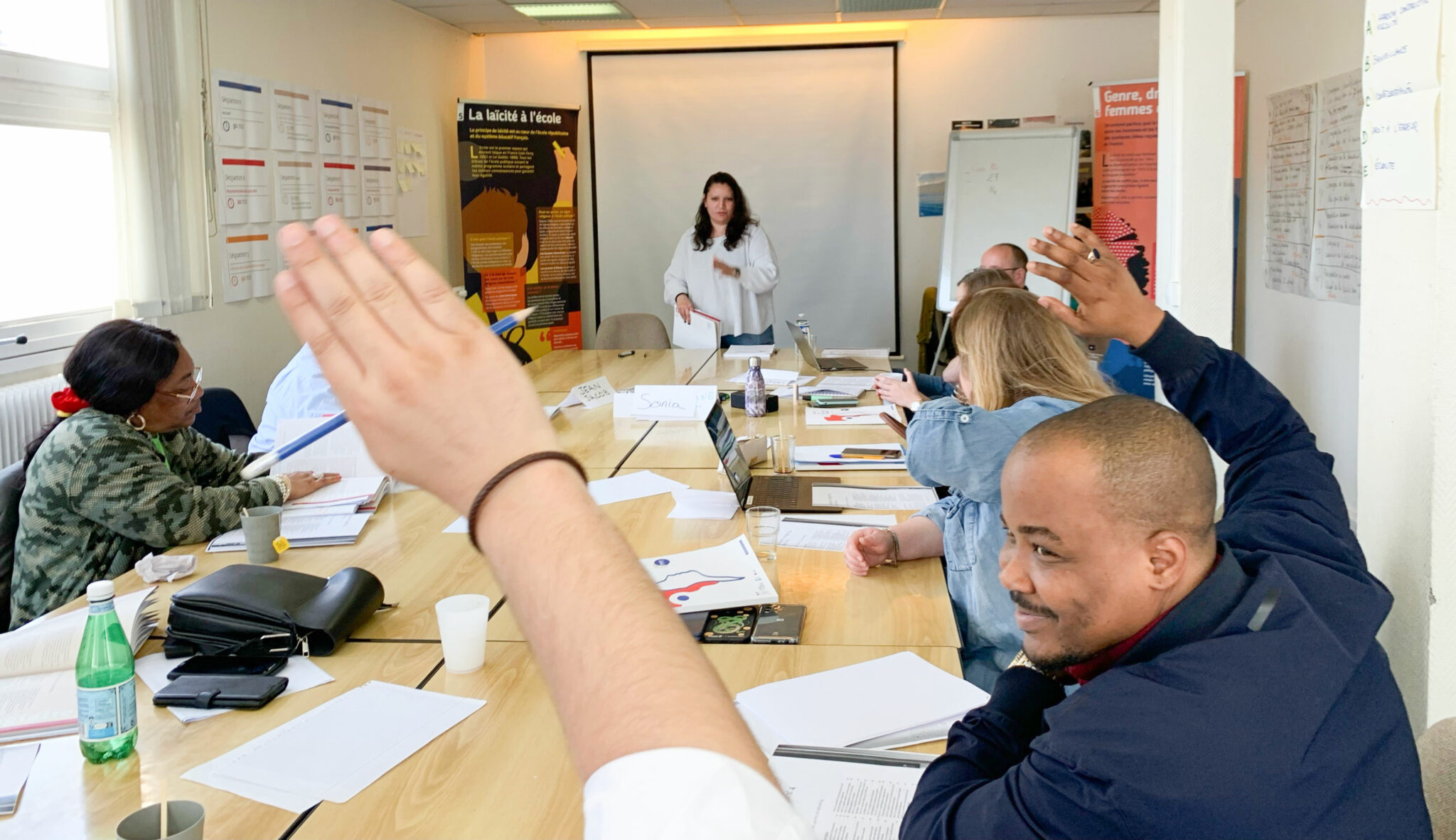 Les 11 séquences de la formation dispensée par la Ligue 95 sont affichées sur un mur : représentation de la laïcité, histoire et terminologie, approche juridique… Mais, à travers ce programme, Marielle, Jean-Jacob, Sonia et les autres ne sont pas là pour découvrir les principes et valeurs de la République. Ces 10 stagiaires suivent, ces trois jours de mai, la formation Valeurs de la République et laïcité niveau 2, pour devenir formateurs eux-mêmes.