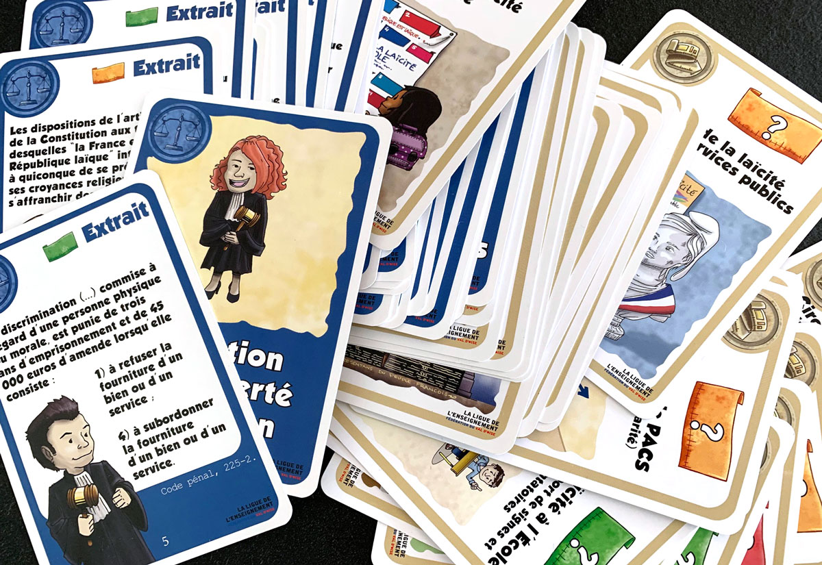 Bientôt, on fêtera l’anniversaire de la loi de séparation des églises et de l’État, promulguée le 9 décembre 1905. À cette occasion, la Ligue 95 enrichit son jeu de cartes pédagogique, «Laïcité 3D» – 3D pour dates, définitions et droit, trois modes d’approche de la laïcité. 10 nouvelles cartes, téléchargeables, s’ajoutent aux 60 qui constituaient le jeu jusqu’à présent.