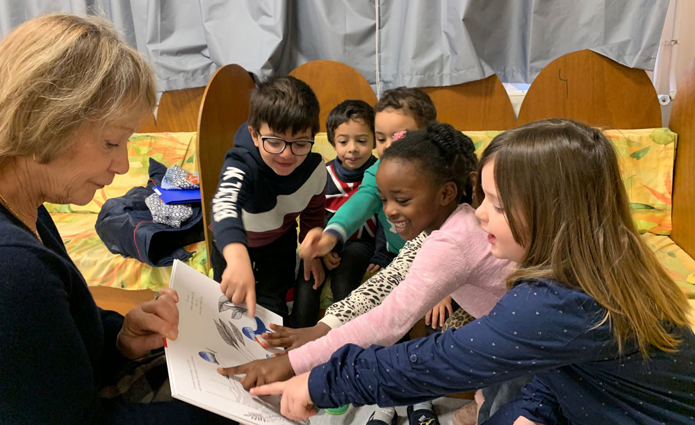 « Aujourd’hui, je vais vous lire « Une maison à hanter ». Qu’est-ce que ça veut dire « hanté » questionne Marie-Lou, lectrice bénévole. « Quand une maison est énorme et abandonnée, ça veut dire qu’elle est hantée », répond Ayoub, enfant de grande section. Nous assistons à une séance de « Lire et faire lire » à la bibliothèque d’une maternelle de Vauréal.