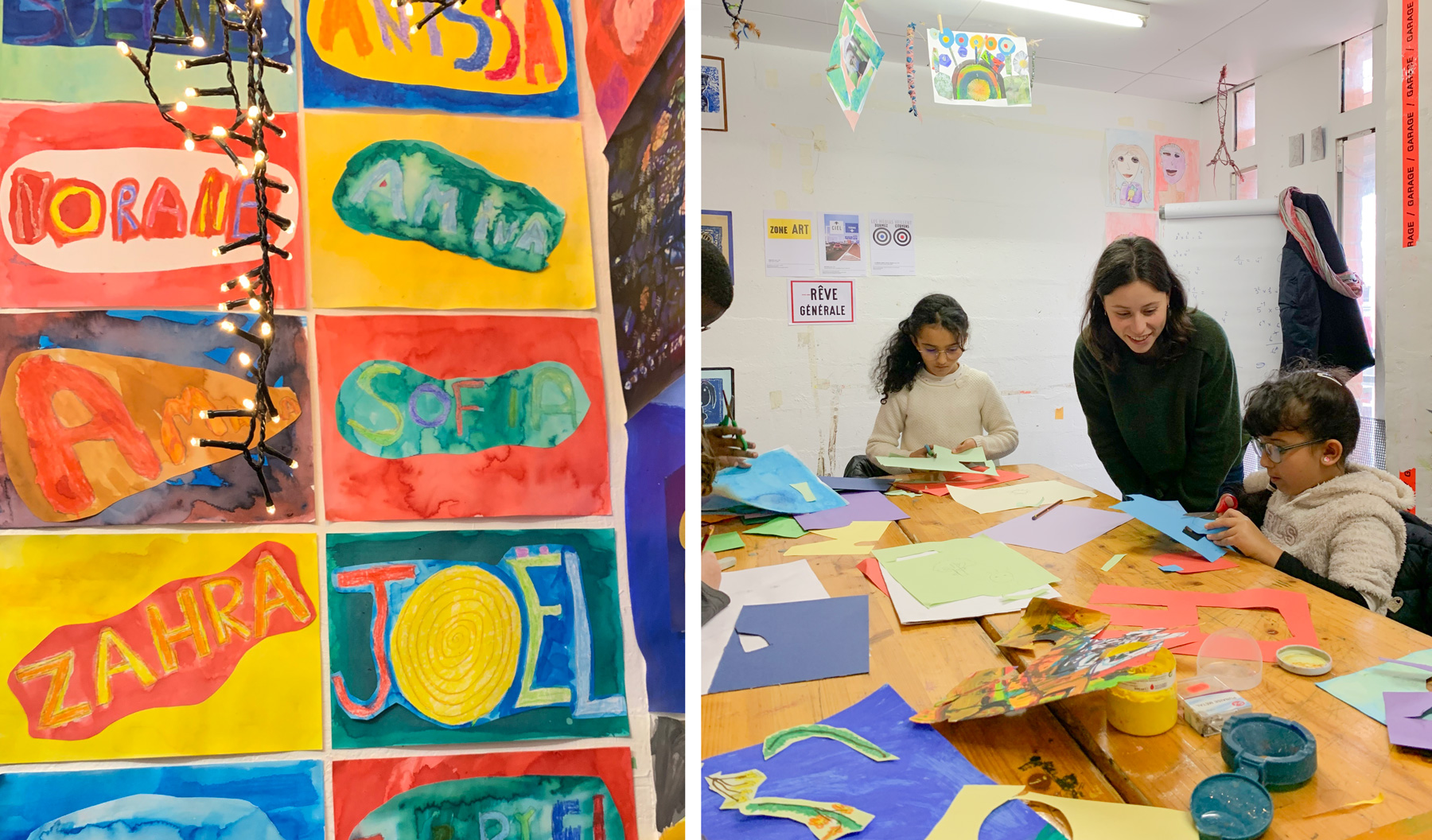 Estelle, 19 ans, n’était pas convaincue par sa 1ère année de licence de langues. « J’ai cherché une mission dans le domaine de l’art sur le site de l’agence du service civique. » Margot vient de Versailles. Ses études en médiation culturelle l’ont conduite en galerie ou au ministère de la Culture. Ce qui lui plait ici, c’est de « monter des projets avec une dimension sociale, pour un public éloigné de la culture », dans une dimension associative qui lui apporte beaucoup. Avec son master en cinéma d’animation (stop motion) Mélanie a déjà un long parcours artistique. Passée par la case design, elle ne souhaitait plus concevoir « de beaux canapés pour les riches ». En surveillant la récréation des artistes en herbe de l’atelier de Garges, Mélanie confie son attachement pour « le travail avec les enfants. C’est comme mes petits-cousins ».