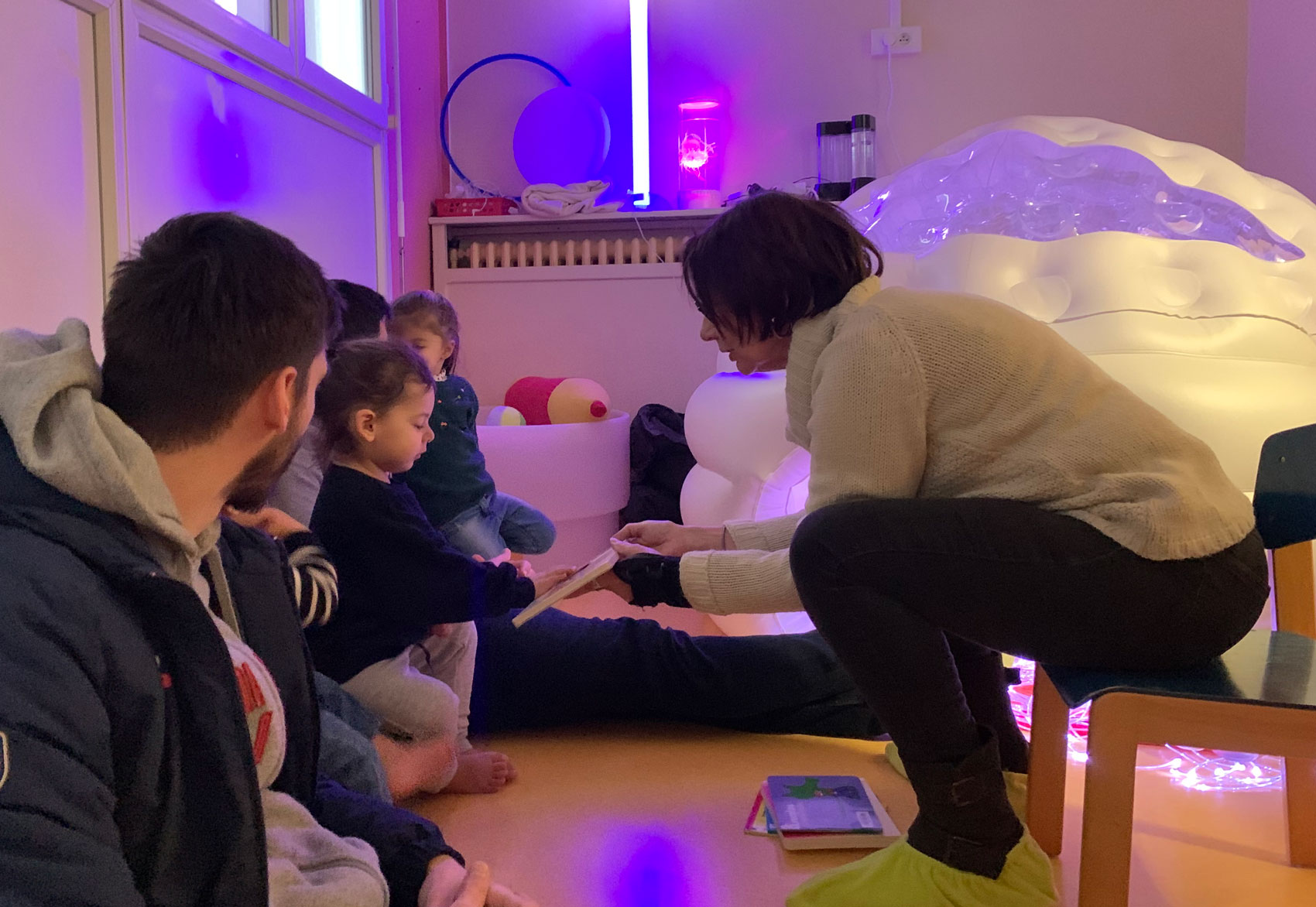 Pour la 8e édition nationale des Nuits de la lecture, « Lire et faire lire » (LFL) organisait une séance spéciale dans la crèche À Petits-pas d’Ermont. Cet équipement petite-enfance de 40 berceaux travaille déjà depuis plusieurs années avec la Ligue de l’enseignement qui porte le dispositif LFL dans le département. En venant chercher leur enfant le soir, les parents aussi étaient invités à venir écouter les histoires lues par trois bénévoles. Le froid vif avait hâté l’heure d’arrivée de tous. Dans les deux petites salles de jeux, des mères, mais aussi beaucoup de pères, assis par terre, participaient sagement à la séance animée par Martine, Véronique et Patricia. Cette dernière était d’autant plus contente d’offrir ce petit moment culturel qu’elle-même n’avait eu aucun contact avec les livres avant son entrée en 6e…
