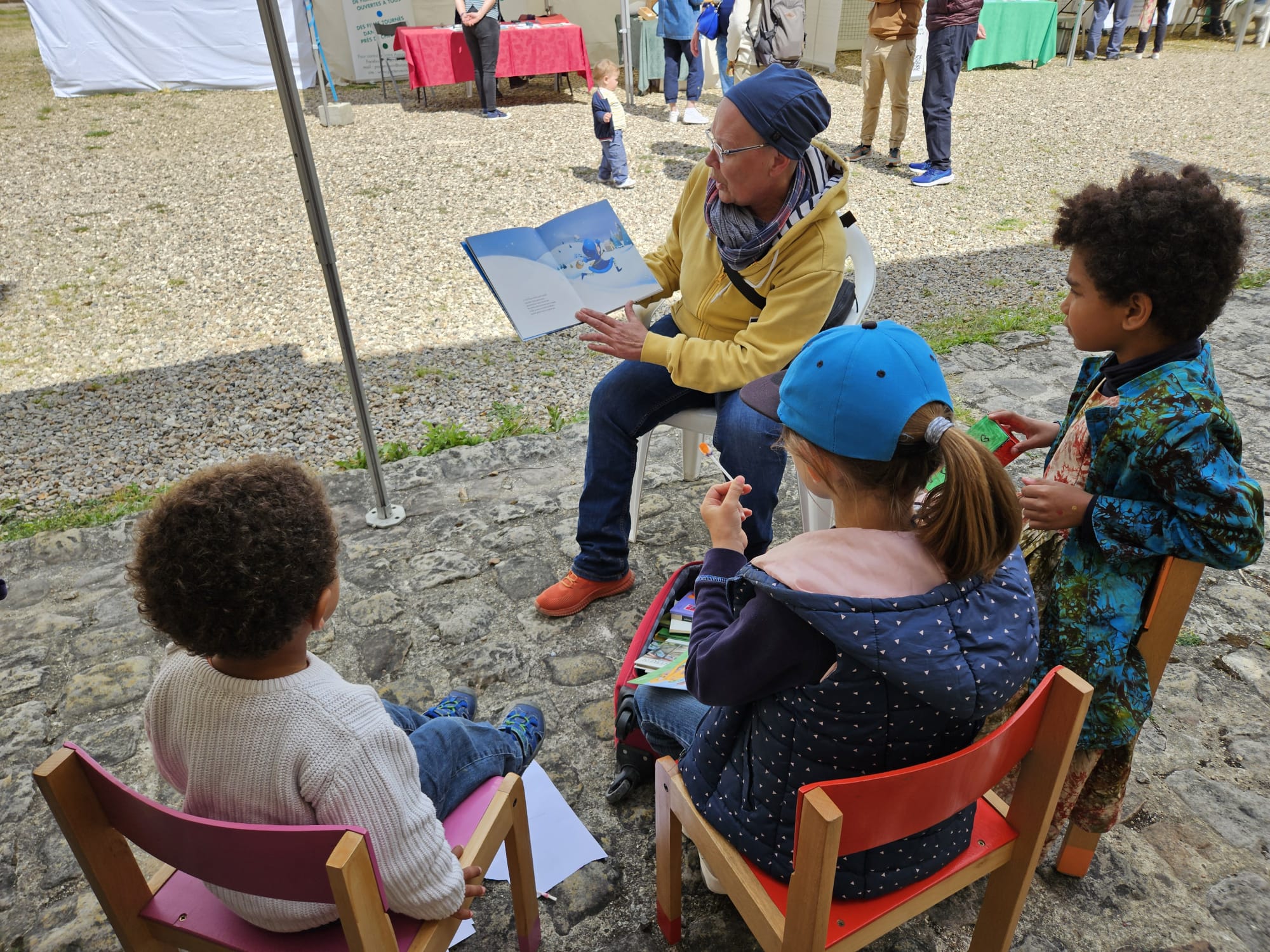 L’emblématique parc de Villarceaux s’ouvrait au livre samedi 17 mai 2025, autour de la thématique de la nature. Organisée par le domaine éponyme et Cible 95, la journée du conte en jardin offrait aux bénévoles de « Lire et faire lire » (LFL) d’exercer leurs talents. Porté par la Ligue 95, LFL tenait un stand, aux côtés de libraires indépendants, d’autres associations et d’artisans du livre. Les lectures proposées aux enfants par les huit lectrices et lecteurs présents, avec la coordinatrice de la Ligue 95 Sandrine Herbert, permettaient de présenter les actions LFL aux visiteurs de la journée.