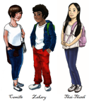 - 1 planche BD représentant Camille, Zakary et Thai-Tanh. Ils seront l’introduction et le fil conducteur pour amorcer la thématique de l’exil avec un groupe de jeunes.