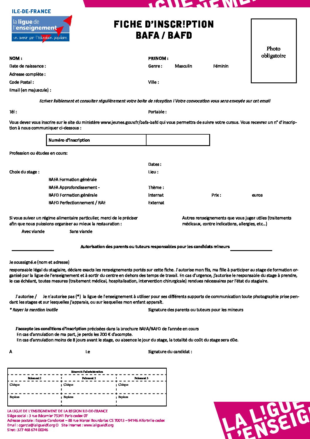 – Votre fiche d’inscription dûment remplie avec photo.