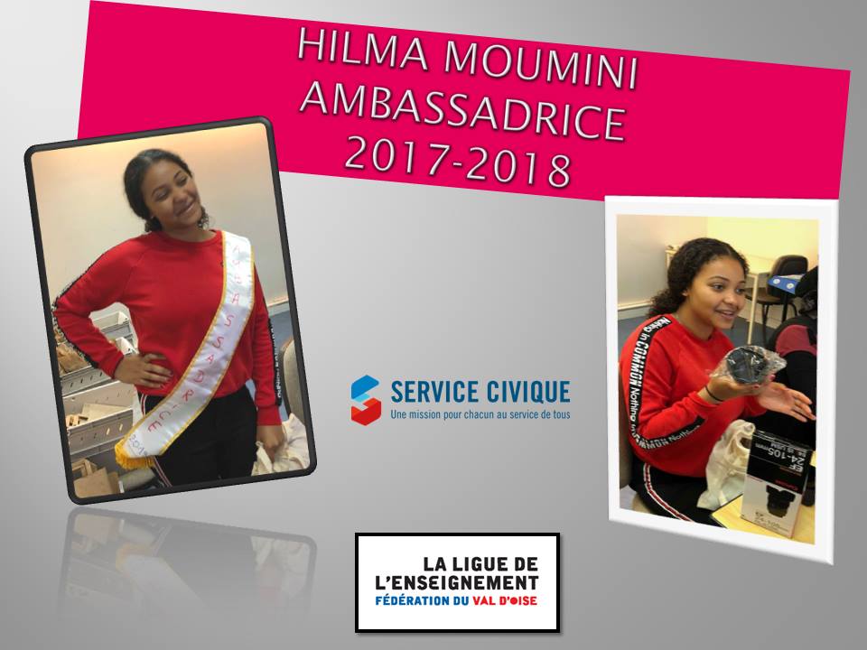 Hilma notre ambassadrice auprès du réseau des jeunes volontaires en service civique a terminé sa mission cet été. Un nouvel ambassadeur est arrivé en Septembre pour poursuivre ces missions qui ont pour but de dynamiser le réseau des volontaires, créer du lien et partager leur expérience.