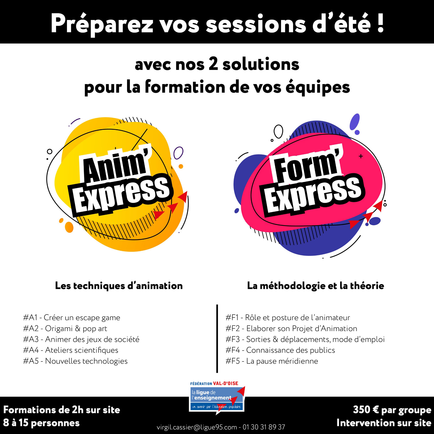 Plus particulièrement destinées aux animateurs des centres de loisirs, le service formation de la Ligue 95 a conçu deux modules : Anim’express, Form’express.