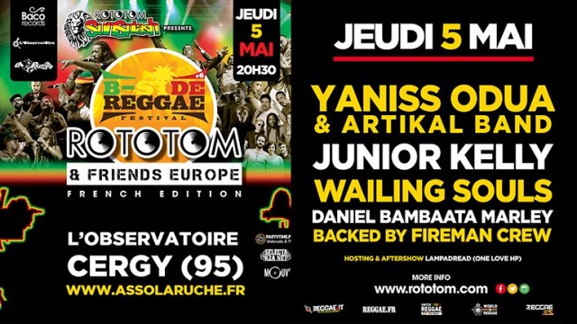 Le « B-Side Reggae Festival » partenaire du Rototom ! Le plus grand événement reggae d’Europe, qui a lieu chaque année au mois d’août en Espagne, fait vibrer tout le continent avec un plateau d’artistes itinérant à la hauteur de sa réputation. YANISS ODUA, JUNIOR KELLY, WAILING SOULS, DANIEL BAMBAATA MARLEY JEUDI 05 MAI à…