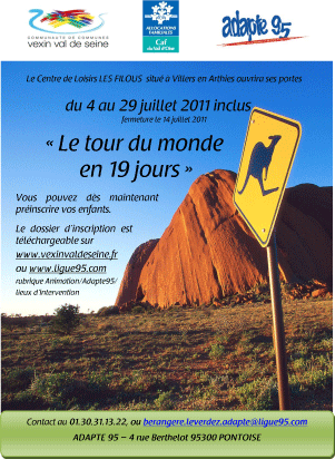 Le centre de loisirs accueillera les enfants âgés de 6 à 13 ans du 4 juillet au 29 juillet 2011 pour de nouvelles aventures.
